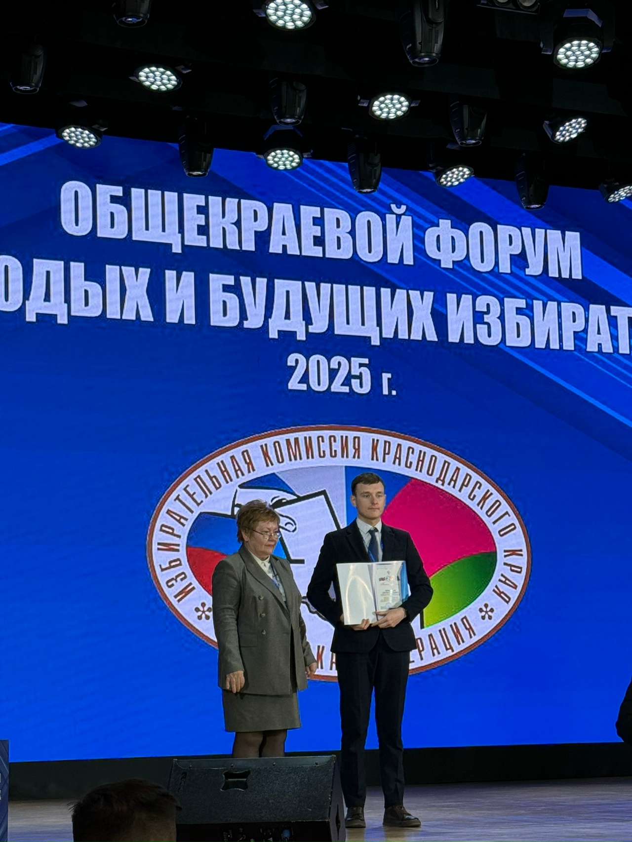 В завершении мероприятия секретарь избирательной комиссии Краснодарского края вручила благодарность председателю МОС при ТИК Абинская, занявшему 1 место в конкурсе среди молодежных общественных советов по итогам работы в 2025 году, действующих при избирательных комиссиях Краснодарского края.