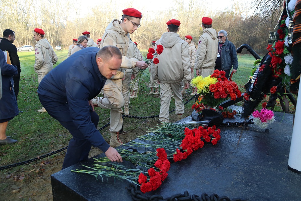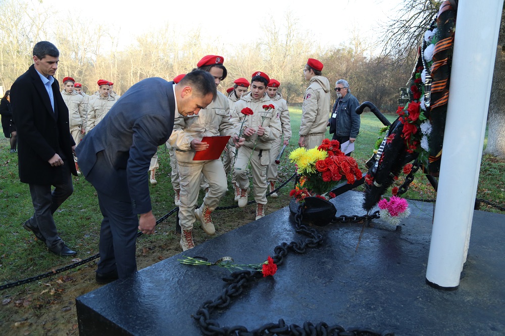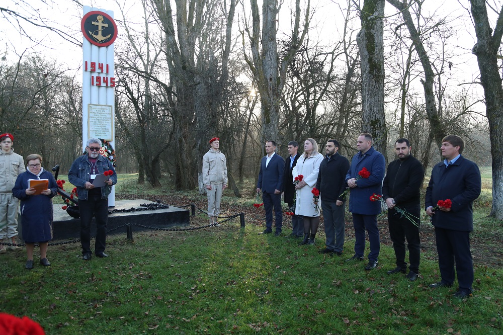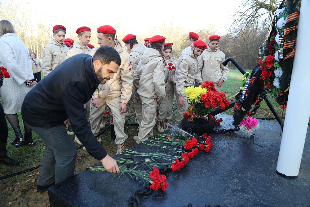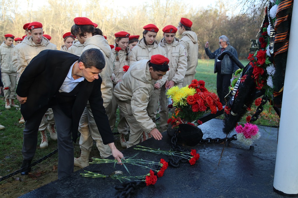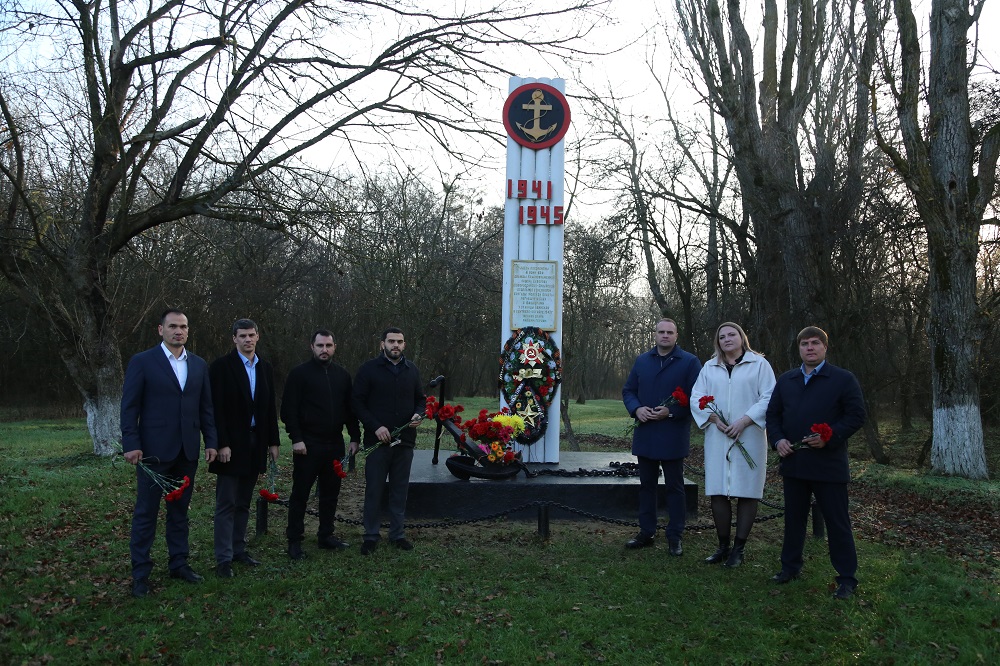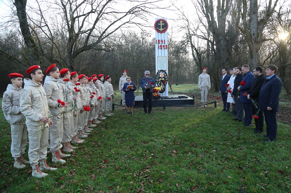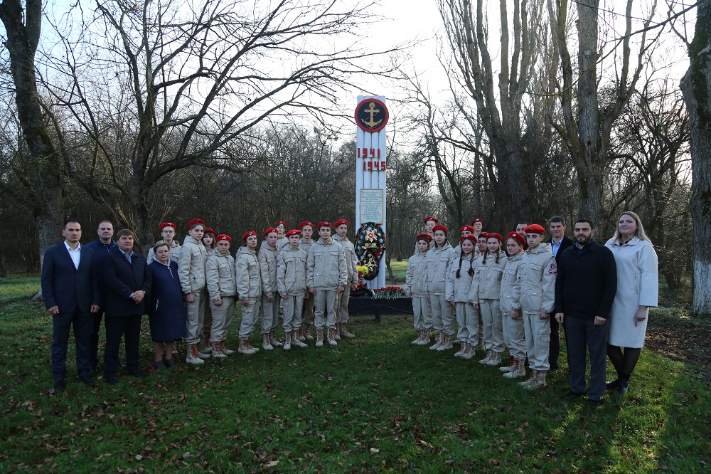 У памятника морским пехотинцам, на территории бывших военных лагерей, почтили память героев члены Совета молодых депутатов района, юнармейцы из школы №4.