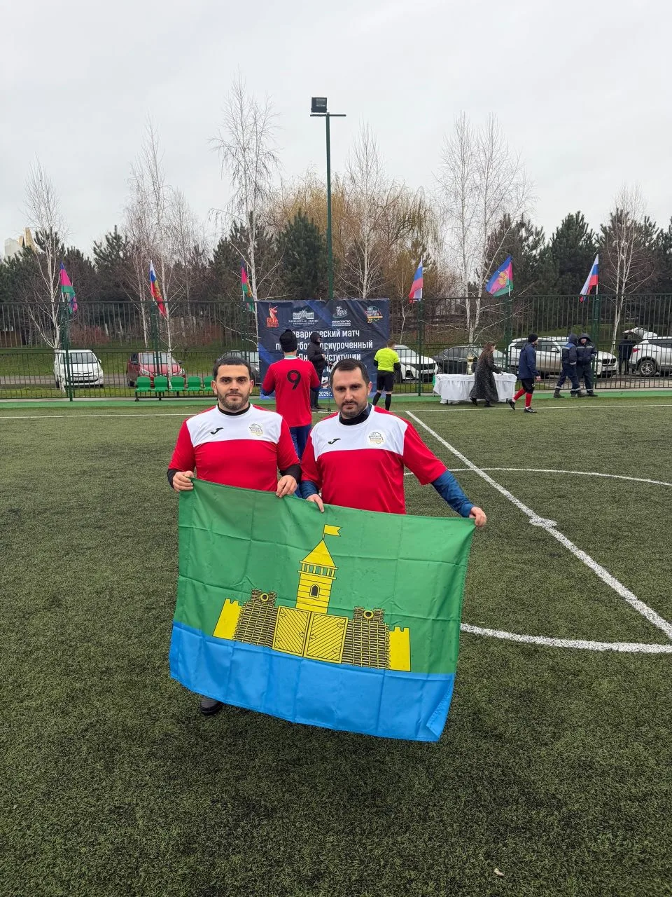 В Динском районе прошел товарищеский матч по футболу в честь Дня Конституции и юбилея краевого СМД