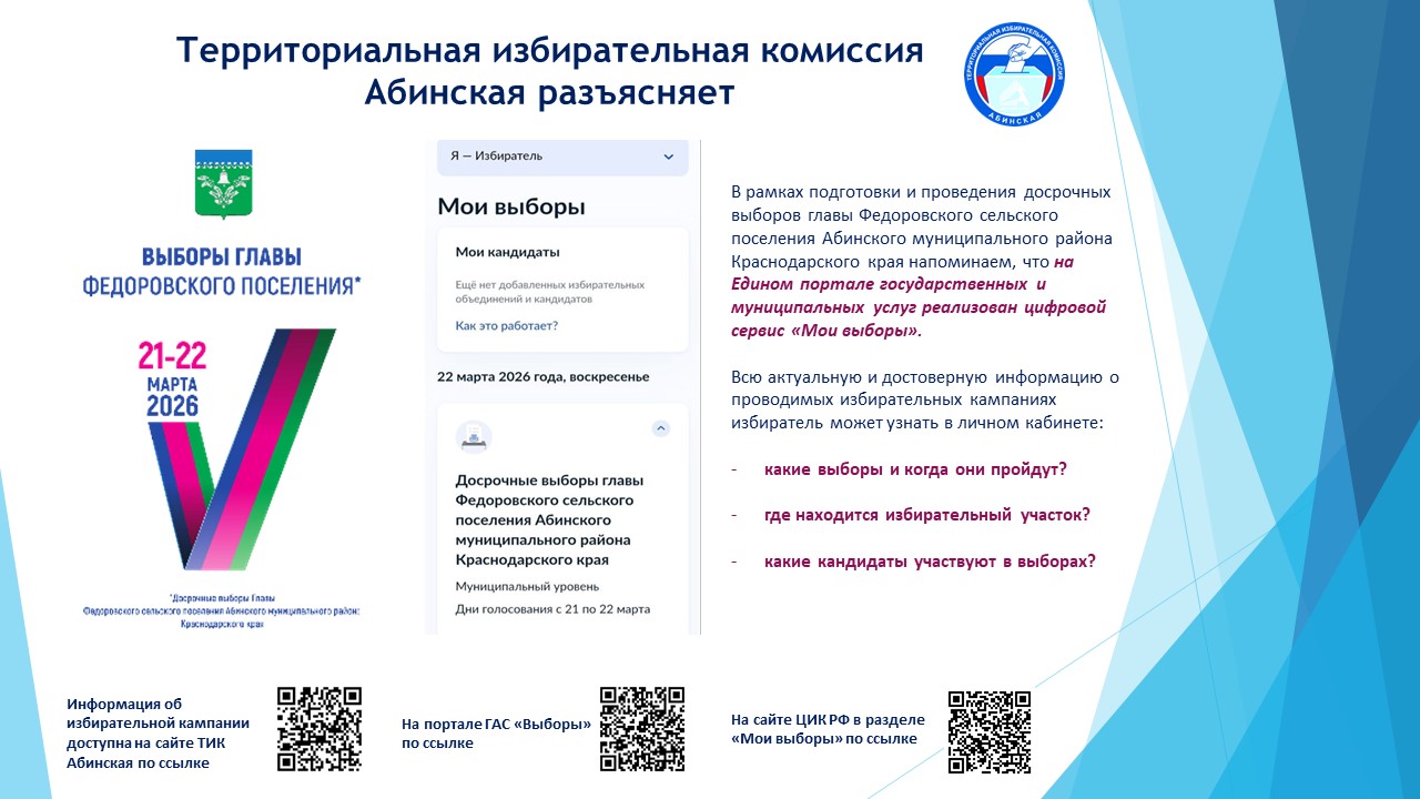 Информация об избирательной кампании доступна на сайте ТИК Абинская по ссылке https://abinskiy.ru/glavnaya/tik-abinskaya/