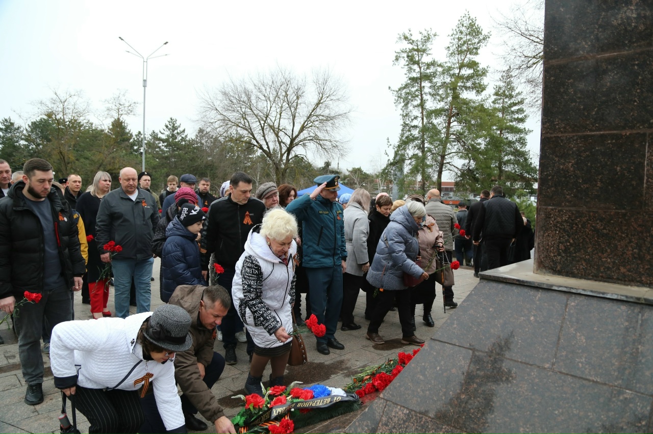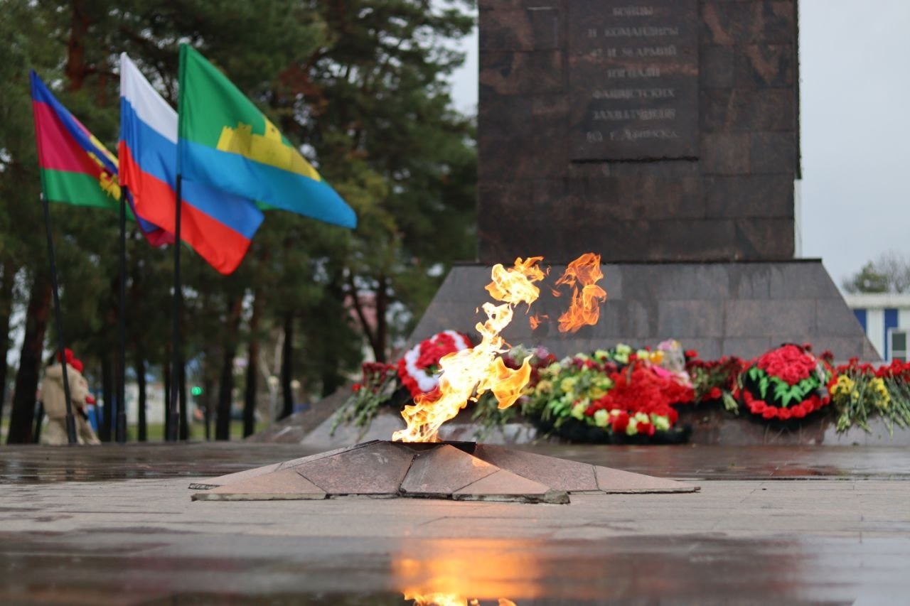 Жители Абинска и представители общественности почтили память героев минутой молчания, возложили цветы как символ благодарности за мир и спокойствие.