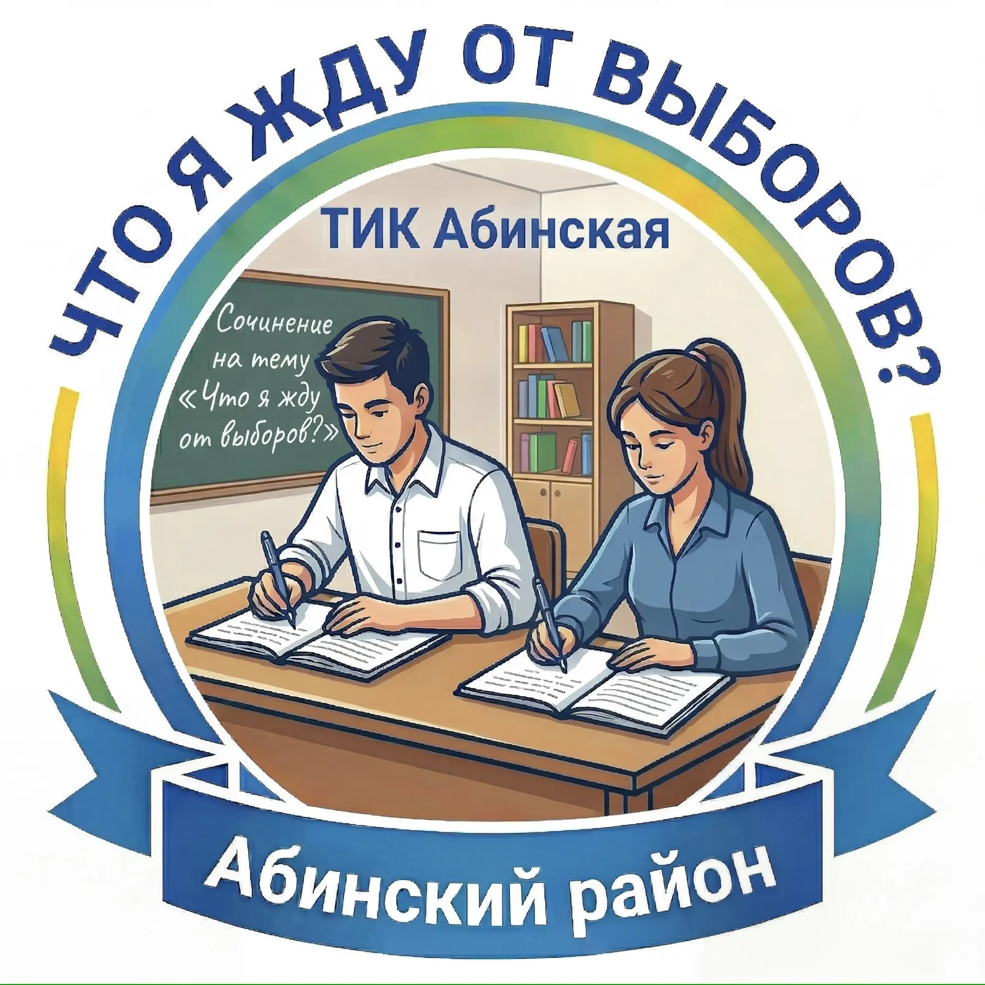 Территориальная избирательная комиссия Абинская в период с 6 апреля по 31 мая 2026 года проводит районный конкурс творческих работ учащейся и студенческой молодежи Абинского района на тему: «Что я жду от выборов?».